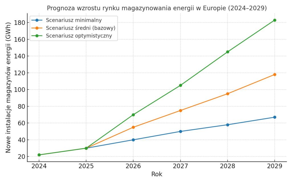 Prognozy dla magazynowania energii 2025–2029